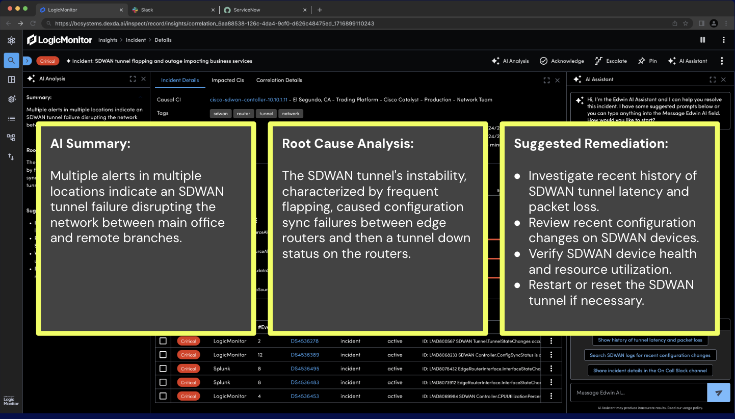 Edwin AI’s AI agent simplifies complex technical alerts into easy-to-understand summaries. IT teams can quickly understand the issue and focus on resolution instead of spending time interpreting jargon.