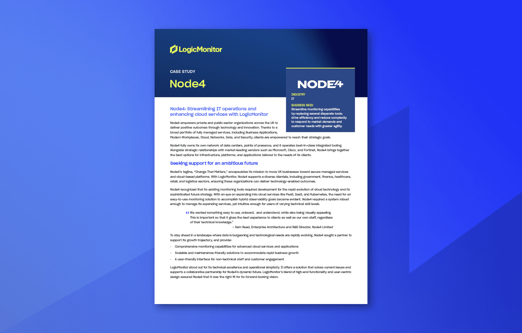 Itility Cloud Control uses LogicMonitor’s end-to-end application monitoring to provide a better, faster, and more cost-effective way to support their customers. Moving on from custom built monitoring solutions, ICC has scaled and grown their business and their offerings to customers by utilizing LogicMonitors out of the box functionality and seamless integrations.