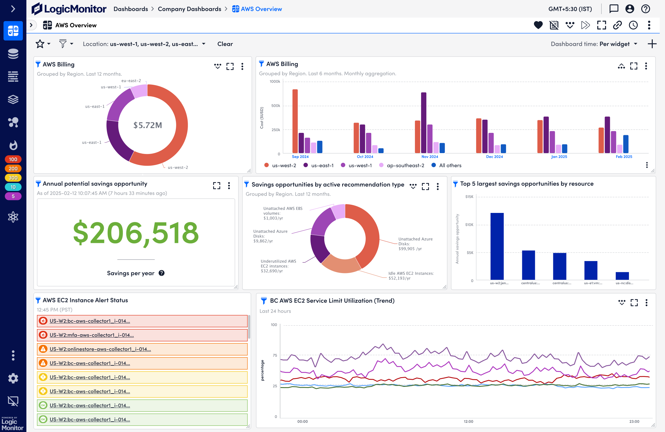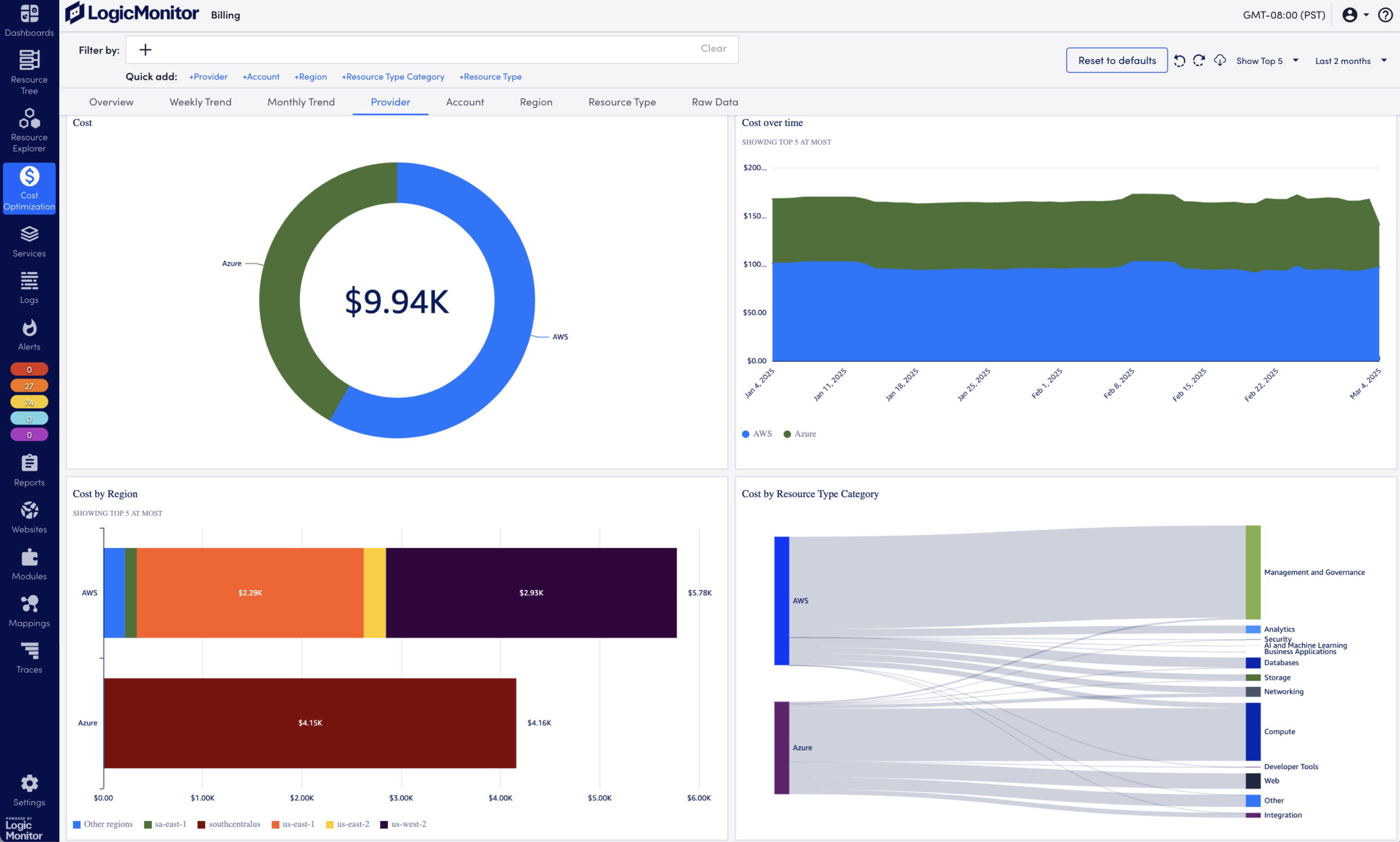 Visualize and track cloud spending with dashboards that include cost metrics, cost savings recommendations, and trend analysis.