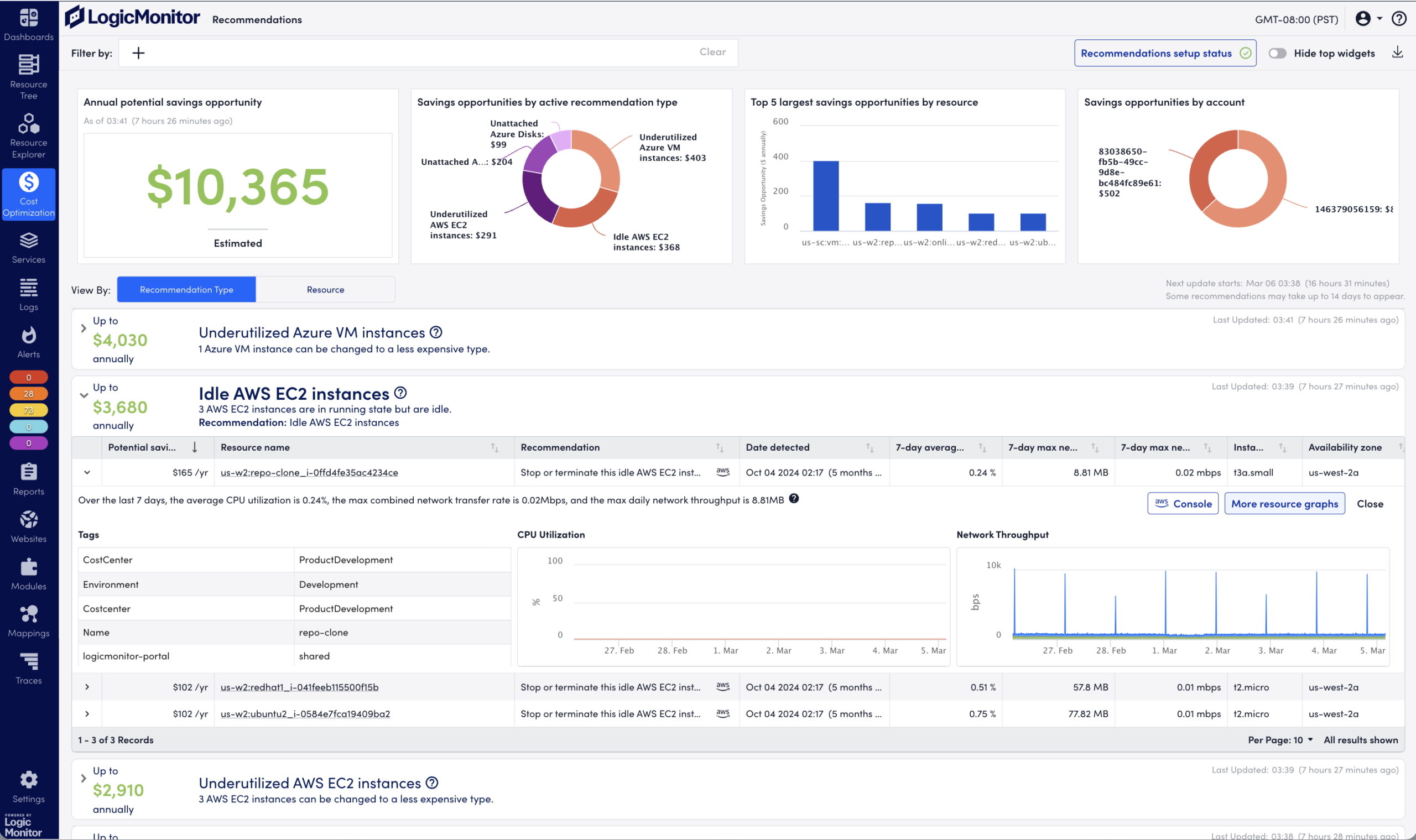 - Proactively adjust Azure and AWS compute, memory, and storage resources with AI-powered cost savings recommendations