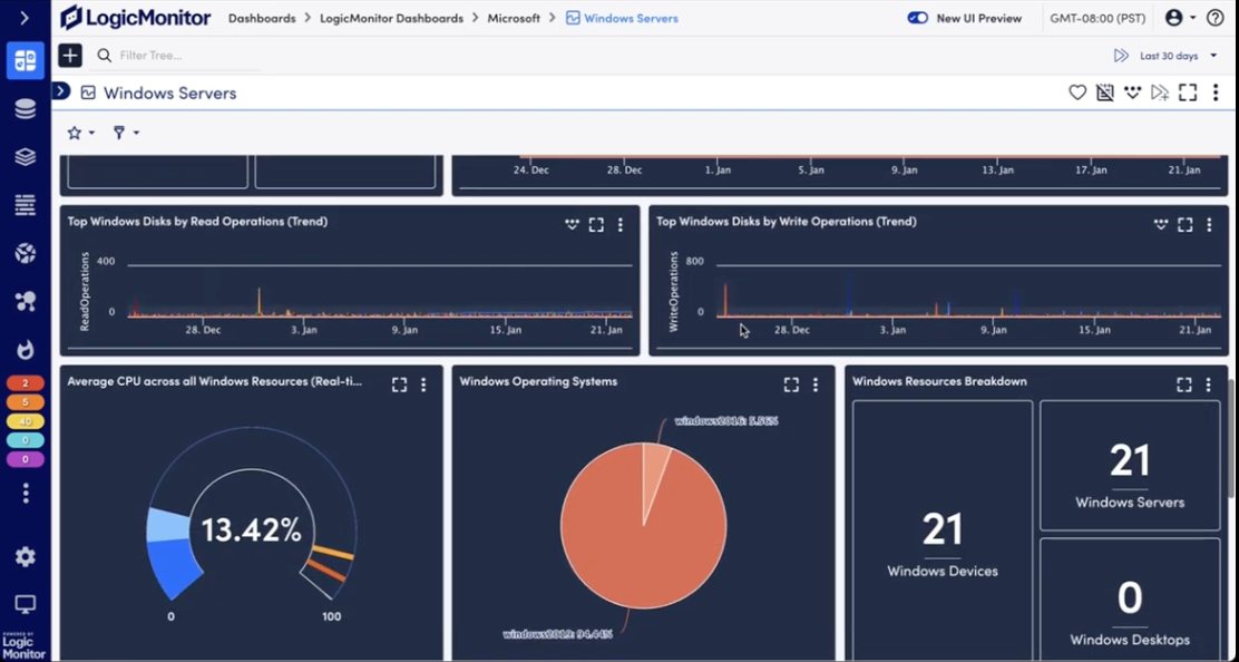 Monitor the health,performance, and utilization of your entire server infrastructure with LM Envision: LogicMonitor’s SaaS-based monitoring platform. Using LogicMonitor’s lightweight, agentless collector, LM Envision automatically detects, monitors, and alerts on: CPU, Memory, Network, and many other OS metrics for Windows, Linux, Solaris, AIX, and more.
