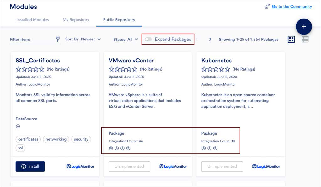 - A centralized view of integrations available in LogicMonitor’s global repository