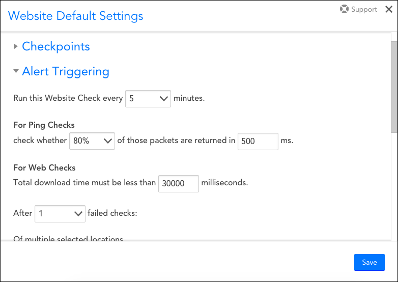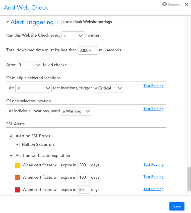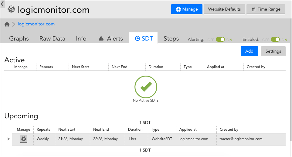 Set scheduled downtime (SDT) for websites to stop alerts from notifying you, while still showing records of what alerts were triggered during your downtime