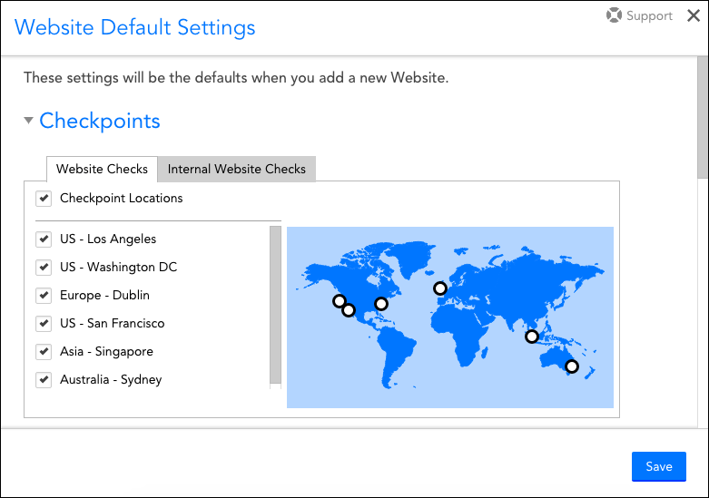 Website monitoring monitors website accessibility and functionality as experienced by the general public via external web checks, and website accessibility and functionality as experienced by your business’ internal users via ping checks.