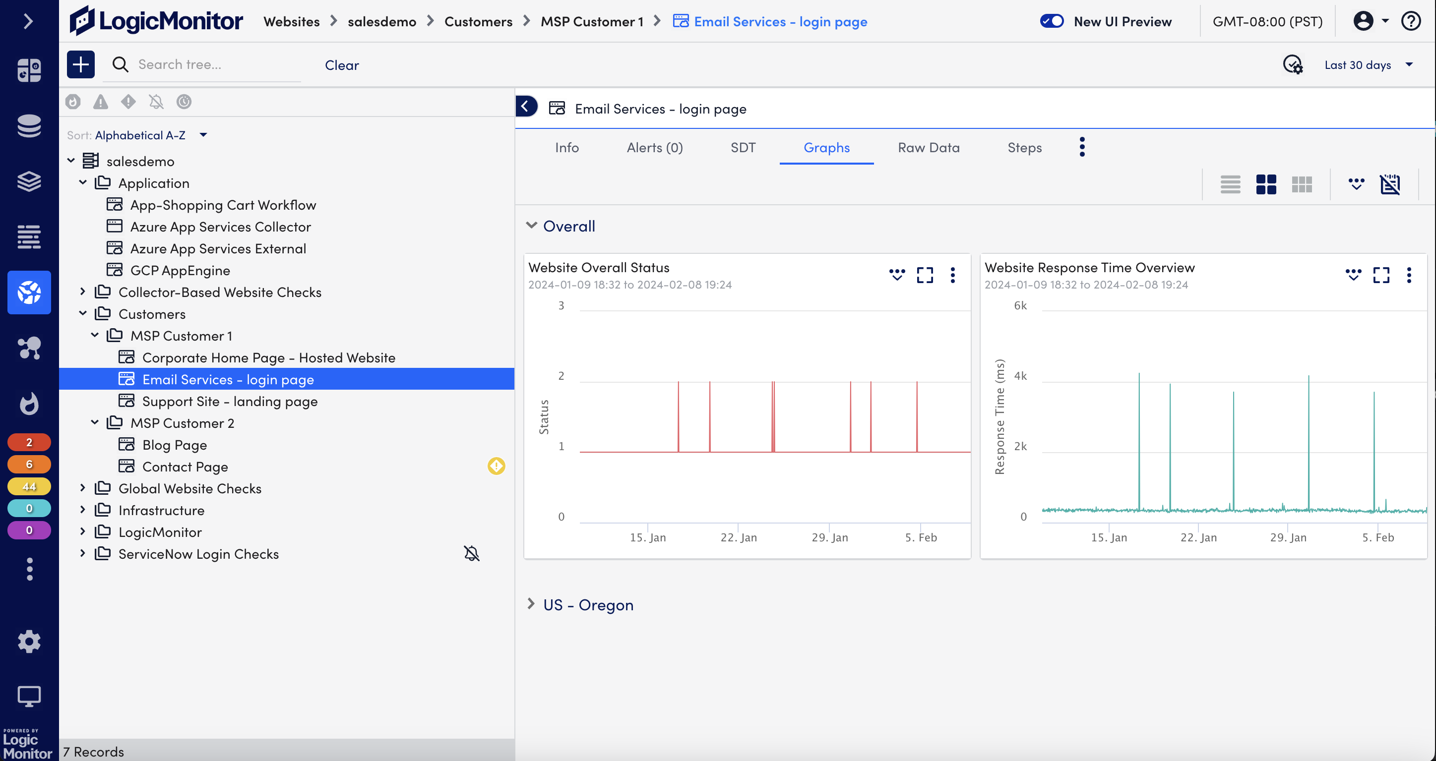 LogicMonitor comes stock with best practice dashboards and alert thresholds for your website checks. Within minutes you will have the data you need to graph, alert, and optimize performance for your internal and external websites from around the world – without installing agents on your web servers.